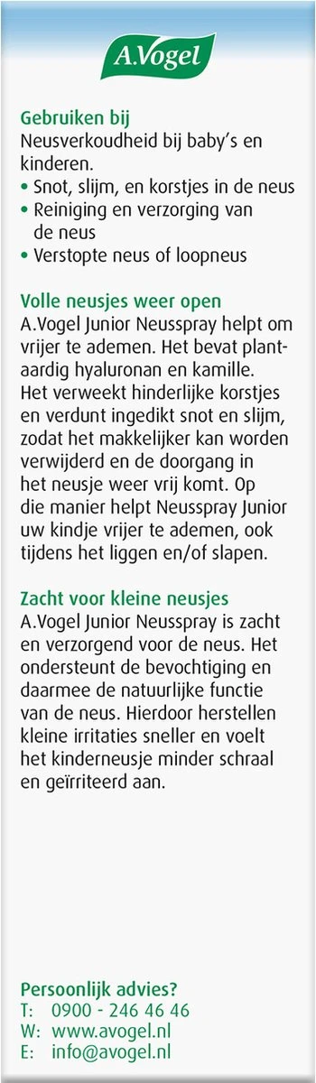 Loopt je kindje te snotteren? Voor kleine, kwetsbare ‘snotneusjes’ is er nu de A.Vogel Cinuforce neusspray baby & kind. Zónder conserveringsmiddelen. Mét 100% natuurlijke hyaluronan en kamille.