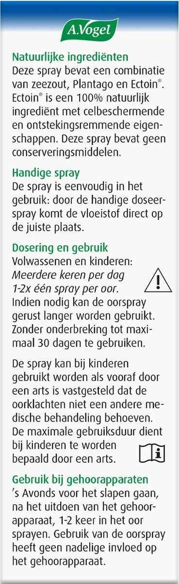 Ectoin® is een 100% natuurlijk ingrediënt met celbeschermende en ontstekingsremmende eigenschappen. Deze Oorspray bevat geen conserveringsmiddelen.