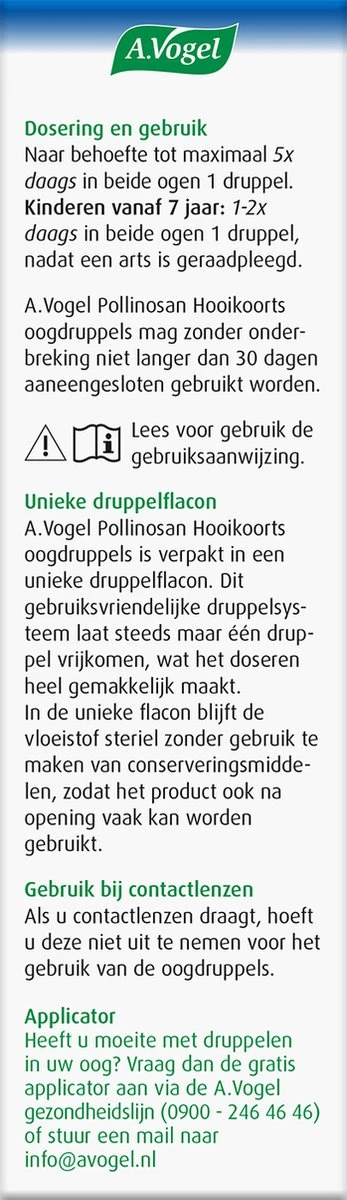 Hooikoorts kan zorgen voor rode, branderige en jeukende ogen. A.Vogel Pollinosan Oogdruppels bevat verlichtende en verkoelende ingrediënten voor je oog en beschermt tegen het binnendringen van nieuwe pollen.