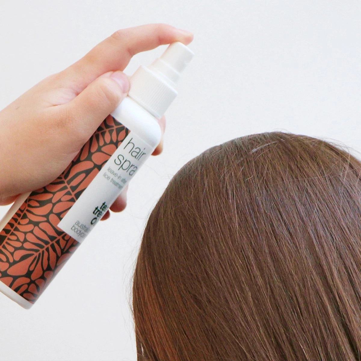 Flauw van terugkerende luizenproblemen? Gebruik Hair Spray dagelijks, om luizen en hoofdhuidproblemen te voorkomen | Kan gebruikt worden in zowel nat als droog haar | Bevat 100% natuurlijke Tea Tree Olie, die bacteriën tegengaat en de hoofdhuid reinigt