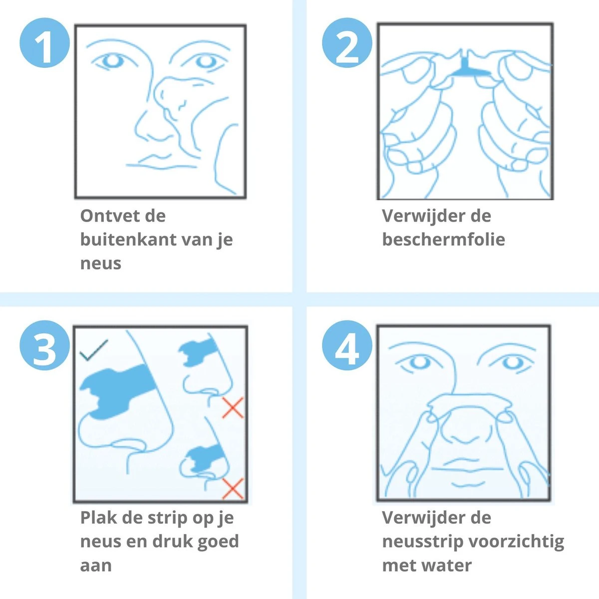 ℹ Let op: de neusstrip is geschikt voor éénmalig gebruik, dus als je de neusstrip verkeerd plakt en hem daarna opnieuw aanbrengt, dan blijft hij minder goed plakken en werkt hij niet goed