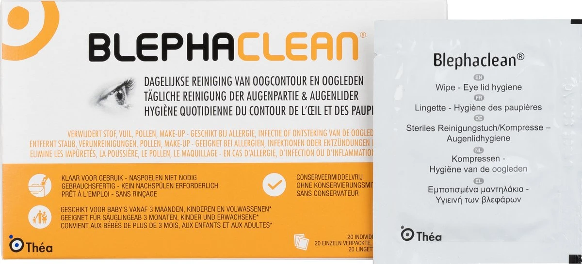 Blephaclean, voor reiniging van de oogleden bij droge ogen en blepharitis.