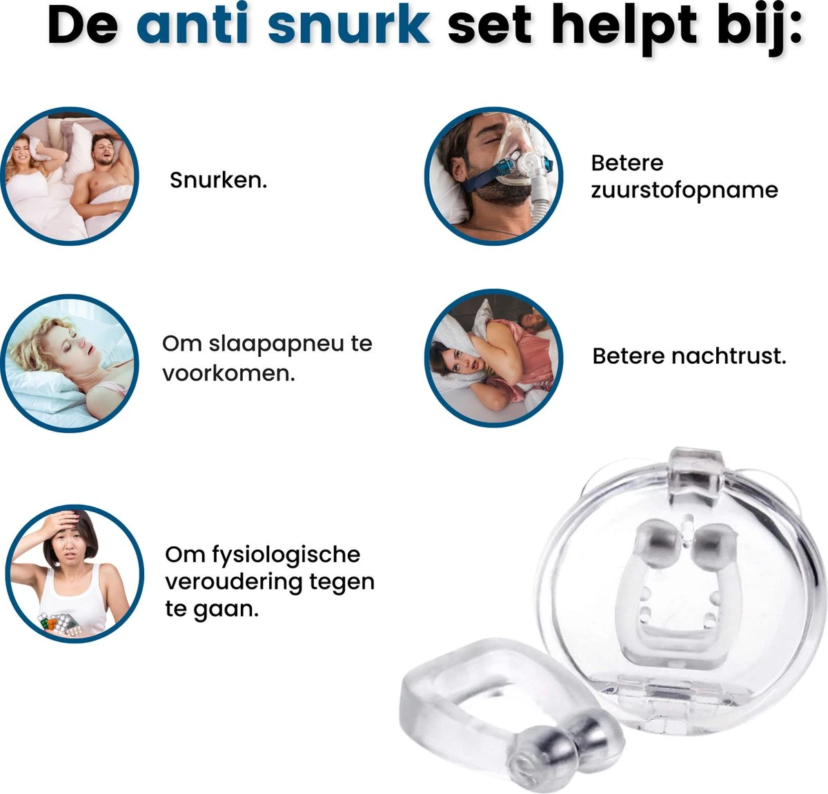 Wil jij het gesnurk van jezelf of jouw partner verminderen en de ademhaling en nachtrust verbeteren? Bestel dan nu de complete anti snurk set!