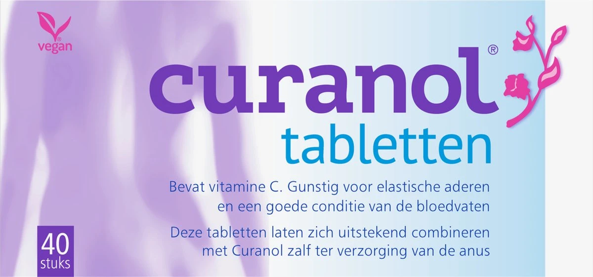 Houdt bloedvaten elastisch en in goede conditie. Voor cosmetische verzorging van ontsierende aderen. Voor de verzorging van blauwe bloedvaten en ontsierende aderen. Deze tabletten laten zich uitstekend combineren met de Curanol Zalf ter verzorging van de anus, ook tijdens de zwangerschap of na de bevalling. Curanol tabletten bevatten het gepatenteerde Menaquinone-Q7 vitamine K2 0,2%, een recent ontwikkelde stof volgens de laatste wetenschappelijke inzichten.