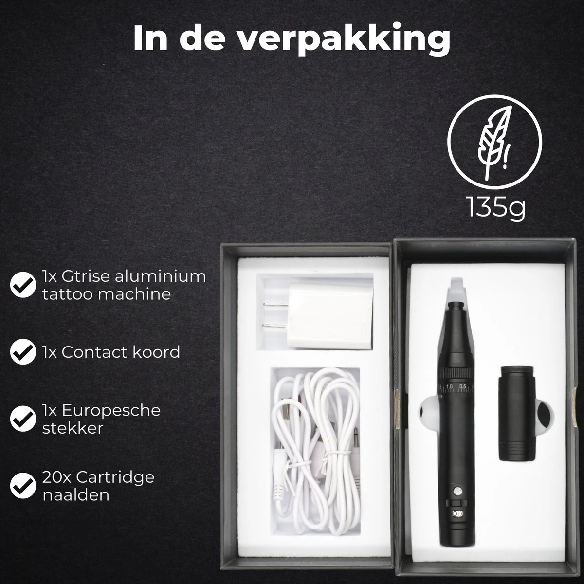 De naalden die je gebruikt kan je snel vervangen. Dit is heel makkelijk en je werkt er snel mee. Bij de set krijg je 20 naalden meegeleverd. 10 Liners en 10 shaders.