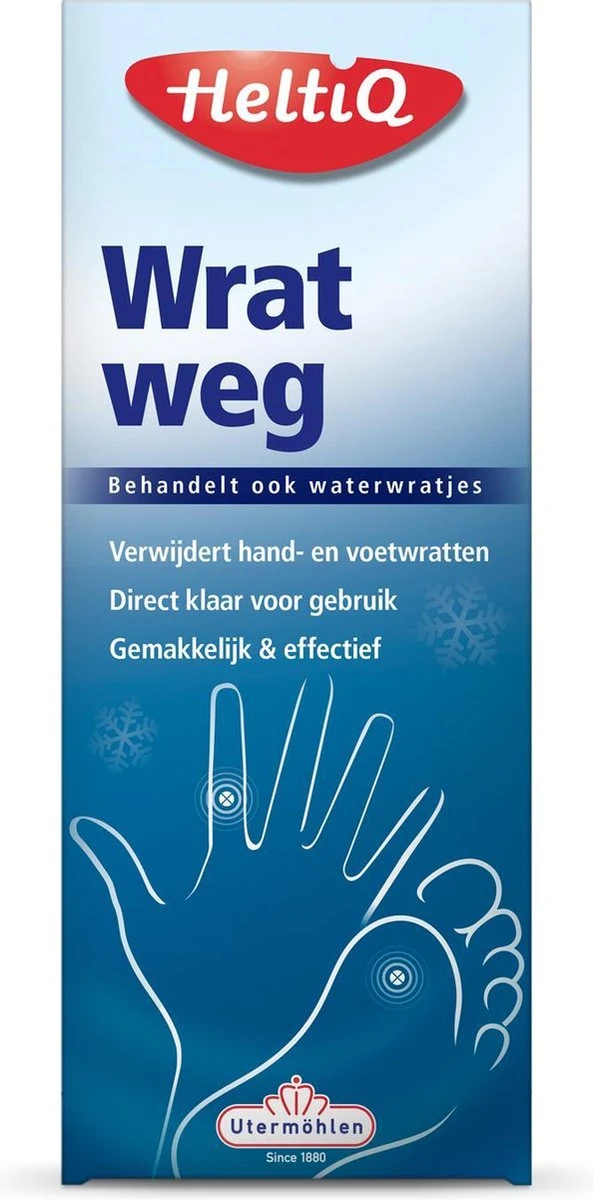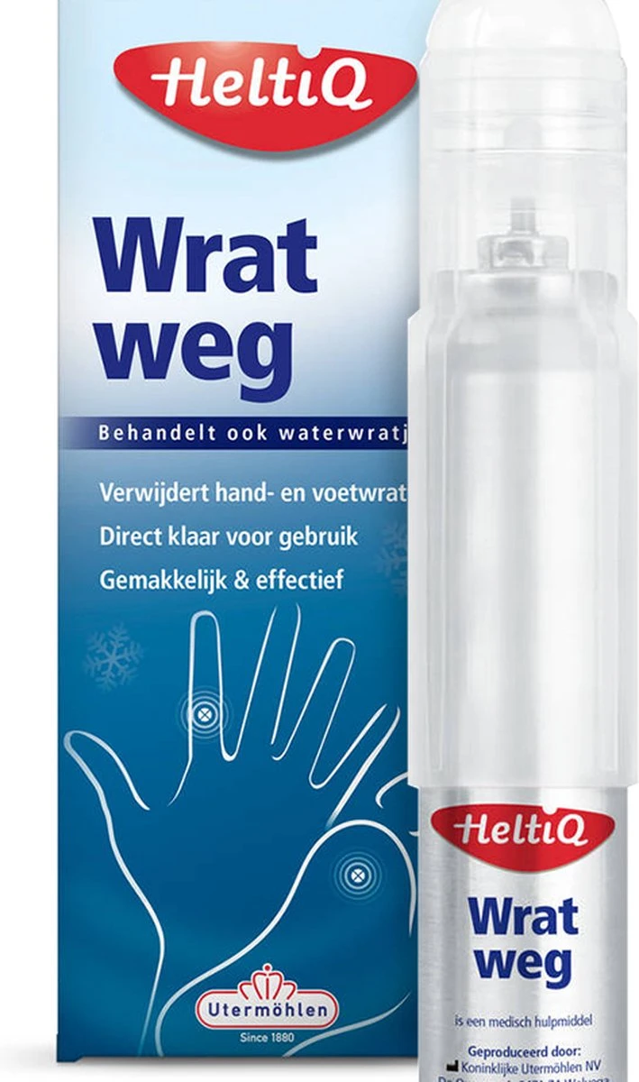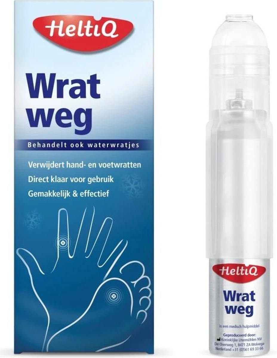 HeltiQ Wratweg is gebaseerd op cryotherapie, een betrouwbare bevriezingsmethode die al jarenlang wordt toegepast en bewezen heeft effectief te zijn. Dankzij het nieuwe doseerventiel kunnen nu niet alleen hand- en voetwratten worden verwijderd maar ook waterwratjes worden behandeld. HeltiQ Wratweg is direct vanuit de verpakking klaar voor gebruik en hoeft van tevoren niet in elkaar gezet te worden.