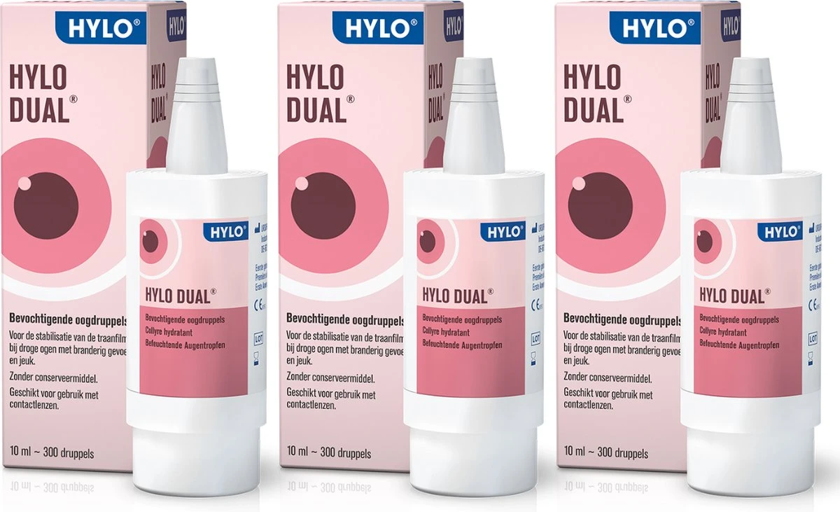 HYLO-DUAL® bevochtigt hoornvlies en bindvlies en beschermt tegen overmatige verdamping van tranen. Deze stabilisatie van tranen verlicht de ontstekingssymptomen van geïrriteerde ogen alsmede in het geval van allergieën. Het jeukende en brandende gevoel van de ogen verdwijnt.