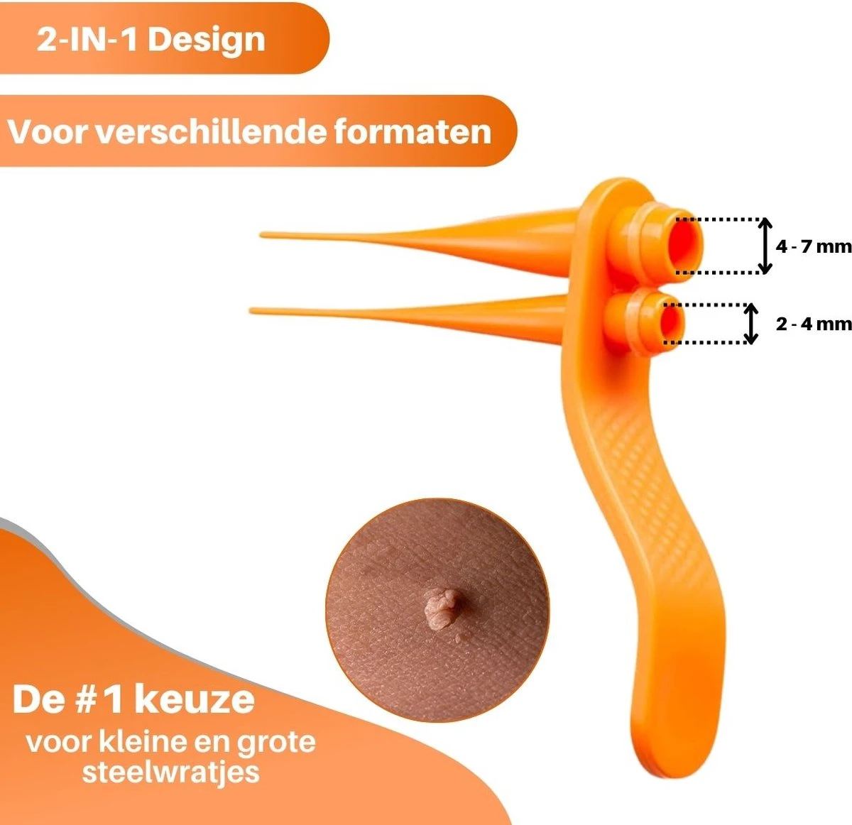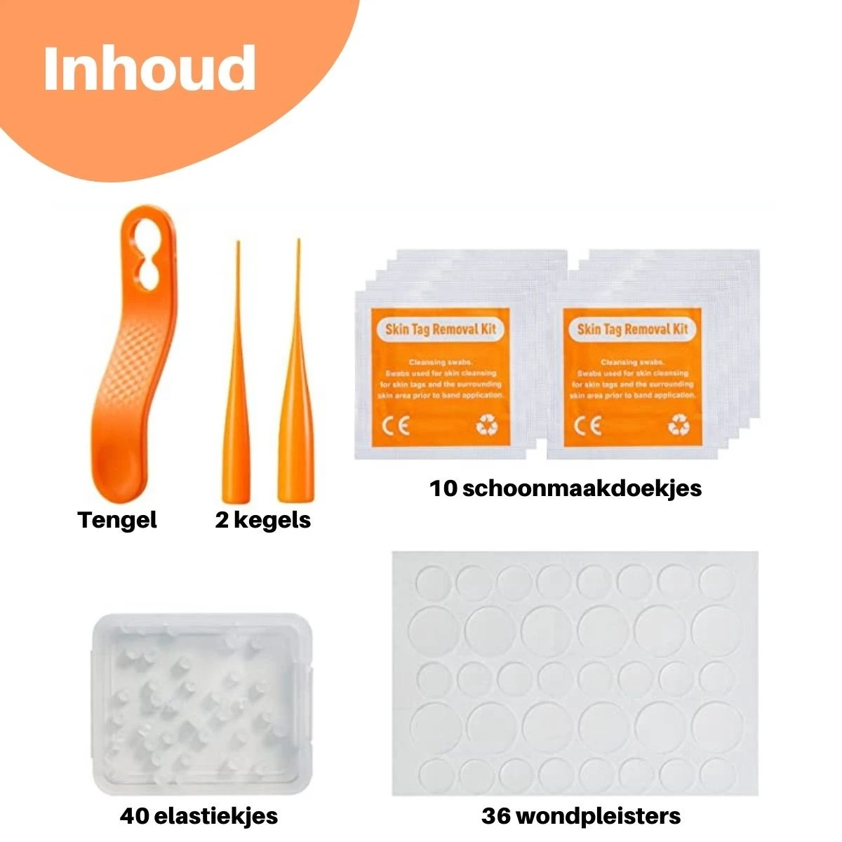 De thuiskit is een complete set waarmee je meerdere steelwratjes kan verwijderen. Er zitten maar liefst 40 elastiekjes, 36 wondpleisters en 10 schoonmaakdoekjes in. Wat deze set uniek maakt, is dat het zowel geschikt is voor grote en kleine steelwratjes. Door twee maten kegels kunnen de elastiekjes op steelwratjes aangebracht worden tussen de 2-4mm en 4-7mm.