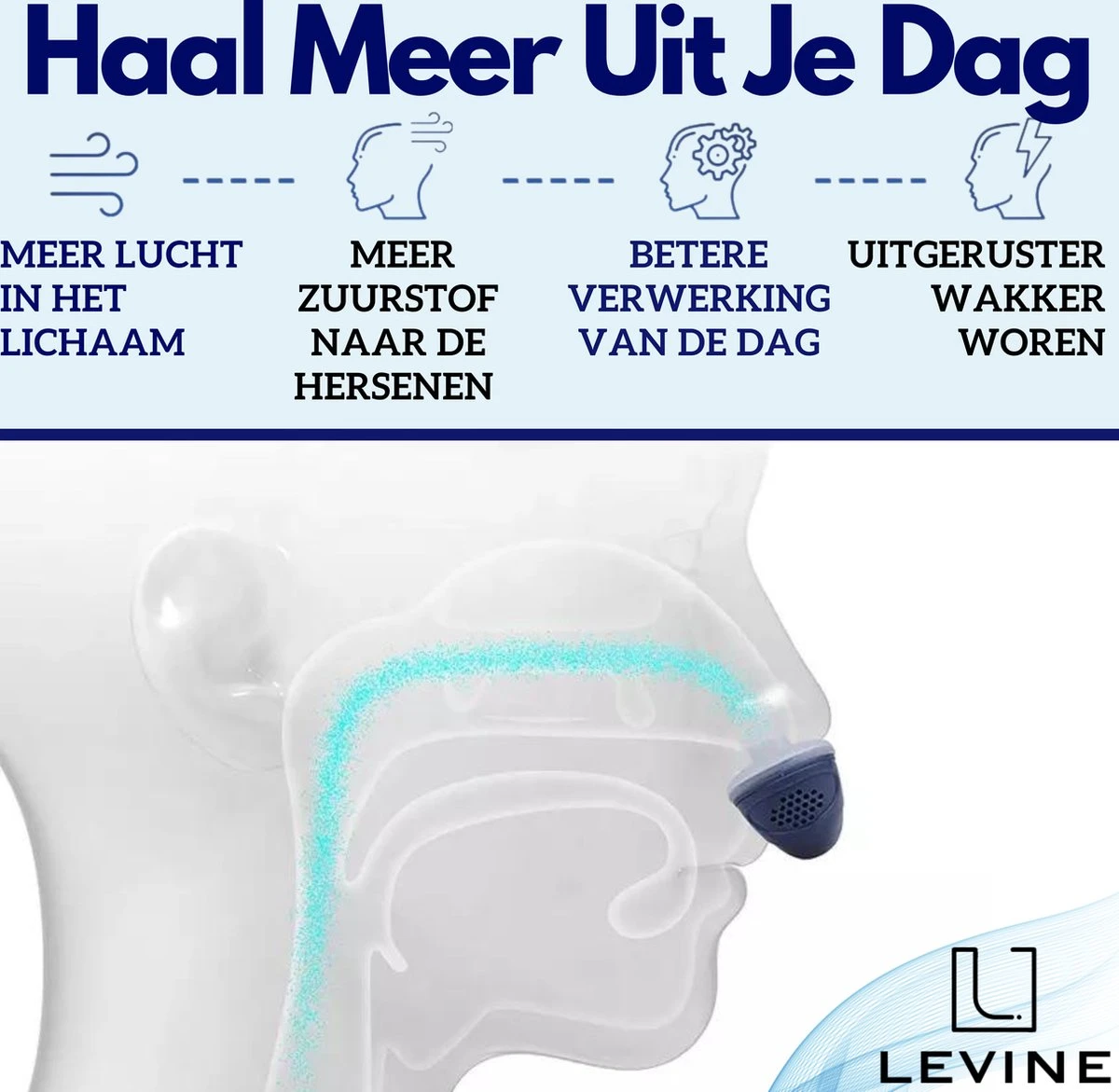 Een goede nachtrust voor jou en je partner? De Levine Anti-Snurk Pro is niet alleen goed voor de nacht, je merkt namelijk ook verschil overdag! De Levine Anti-Snurk Pro Heeft 2 mini propellers ingebouwd waardoor je luchttoevoer tijdens je slaap verbeterd wordt. Door de extra zuurstof in je lichaam en dus ook in je brein, verwerkt het brein de dag vele male beter tijdens je slaap waardoor je uitgeruster wakker wordt!
