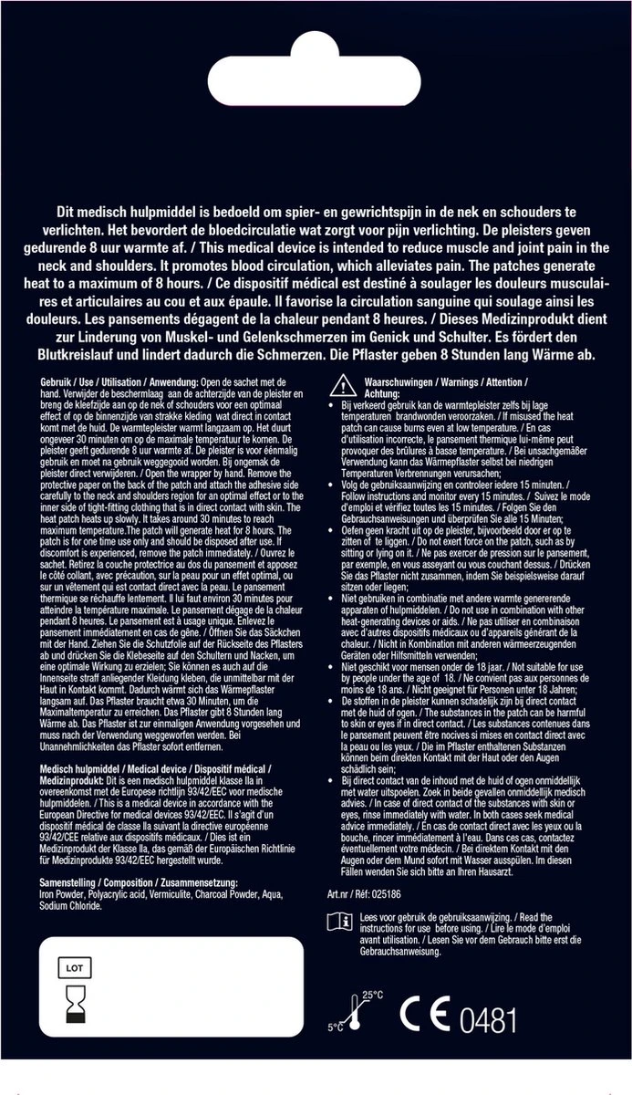 Lucovitaal Spier & Gewricht warmte pleisters geven verlichting bij spier- en gewrichtspijn in de nek of schouder door warmtetherapie. Warmtetherapie verhoogt de bloedtoevoer en de weefsel zuurstofvoorziening. Bovendien ontspant het de spiercontracties. Samen veroorzaken deze effecten een vermindering van spier- en gewrichtspijn.