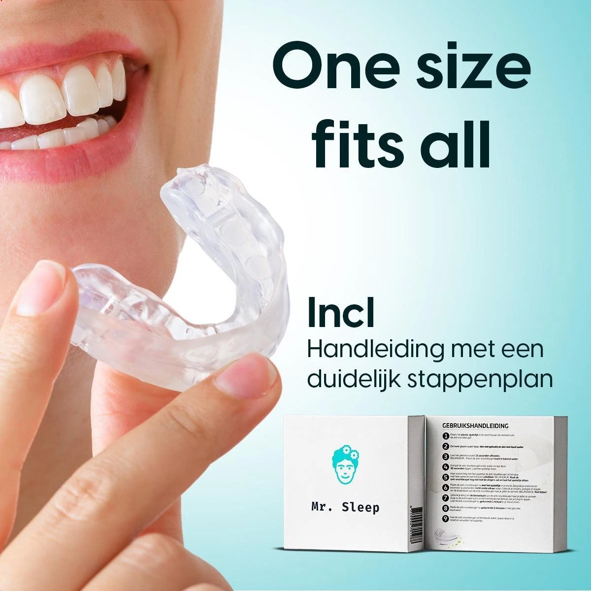 Hoe pak je dat vervelende geronk aan? Met ons transparante bitje kunnen jij en je partner ongestoord slapen. De beugel zorgt ervoor dat je luchtwegen niet worden geblokkeerd en jij voor eens en altijd af bent van jouw gesnurk.