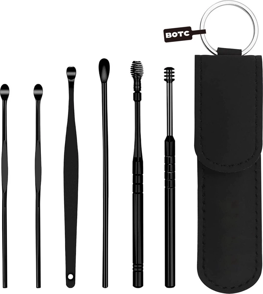 Oorreiniger set – 6 in 1 Draagbare Ear Wax Pickers Cleaner Set – Zwart