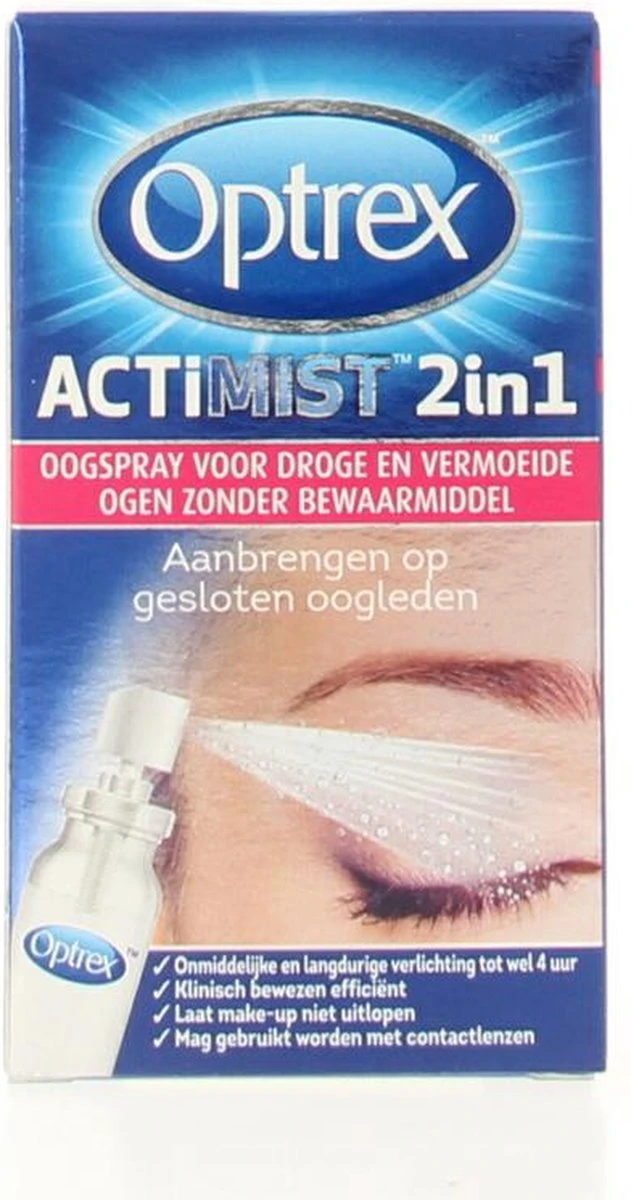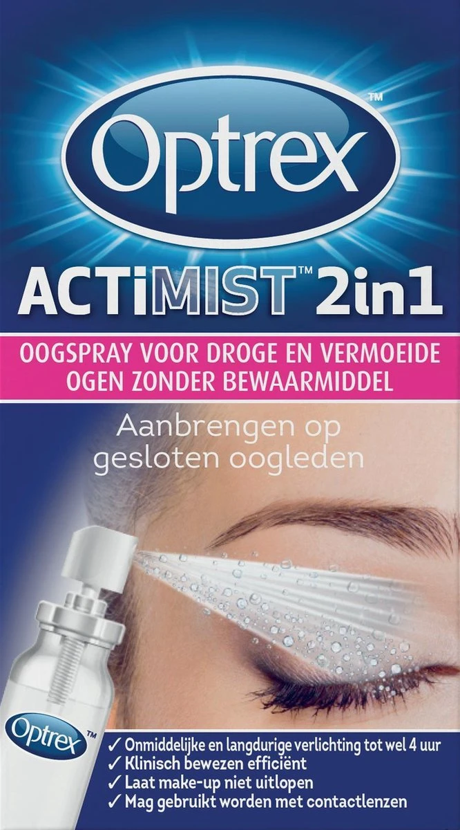De Optrex ActiMist 2in1 Oogspray voor Droge en Geïrriteerde Ogen is veilig te gebruiken in combinatie met contactlenzen en make-up.