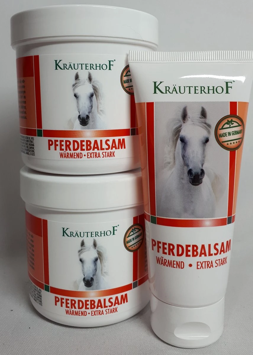 Paardenbalsem – Kräuterhof – Extra Sterk – Verwarmend – 250 Ml – Spierbalsem – Voordeel Set Van 2 Potten + 1 Reis Tube Van 100 Ml