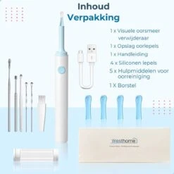 Westhome Oorsmeer Verwijderaar Met Camera- Oorreiniger – Met 6 Delige Set – Wifi – Wit