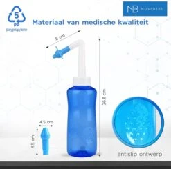 Novabeau Neusdouche Met 15 Extra Zoutzakjes En Neusspray – Neusspoeler Van 300 Ml Voor Hooikoorts En Verstopte Neus – Neusreiniger Voor Volwassenen En Kinderen – Neuspomp – Neti Pot
