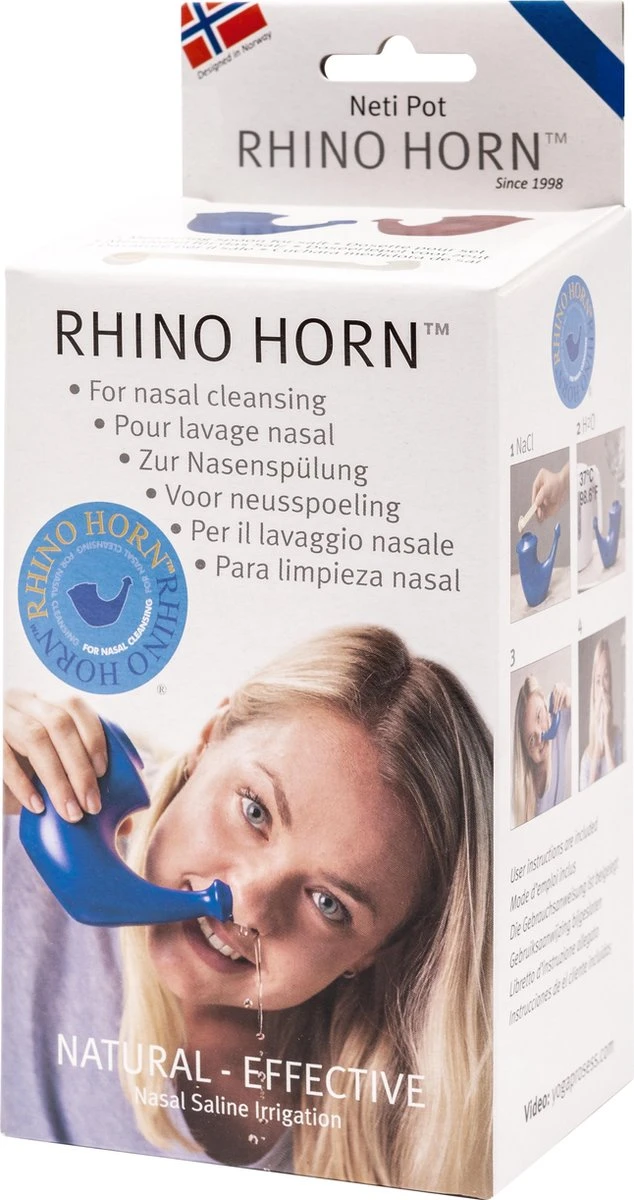 Verstopte neus of bijholteontsteking? Last van hooikoorts of luchtwegallergie? Spoel uw verstopte neus eenvoudig vrij met Rhino Horn.