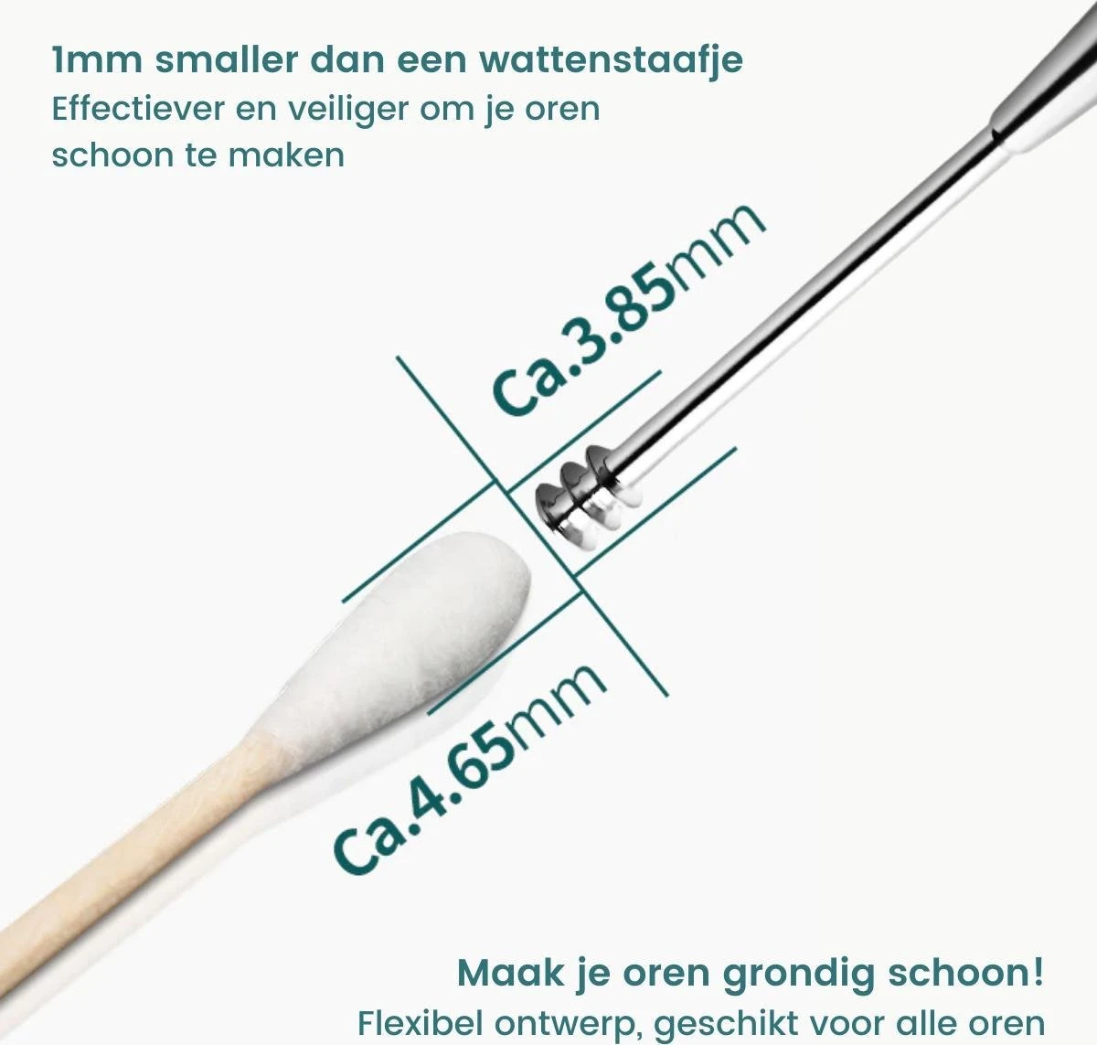 - Hoe te gebruiken: Reiniging van de oren is belangrijk. Gebruik een voor jou fijne en passende lepelvormige oorlepel en gebruik deze om het oorsmeer er voorzichtig uit te pellen. Gebruik vervolgens de 4-rings-schroeftool om het oorsmeer uit de gehoorgang te halen.