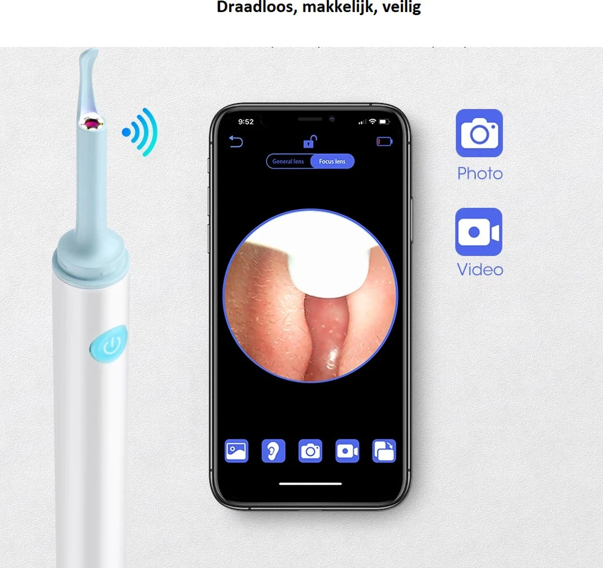 - Eenvoudig oorsmeer verwijderen met camera en Led lamp.