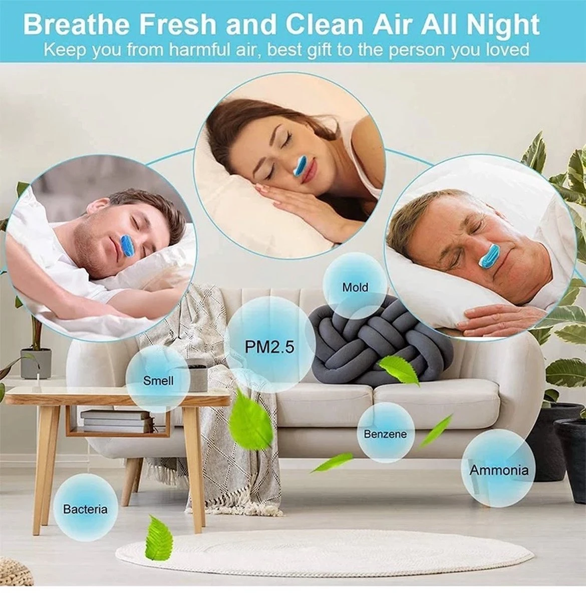 Bevrijd slaapapneu met de Anti Snurk Pro ™ luchtreiniger.Het apparaat opent de neusgaten en laat lucht gemakkelijker door uw neus stromen door het te filteren en daardoor neusverstopping te voorkomen, wat een bijdragende oorzaak is van snurken.