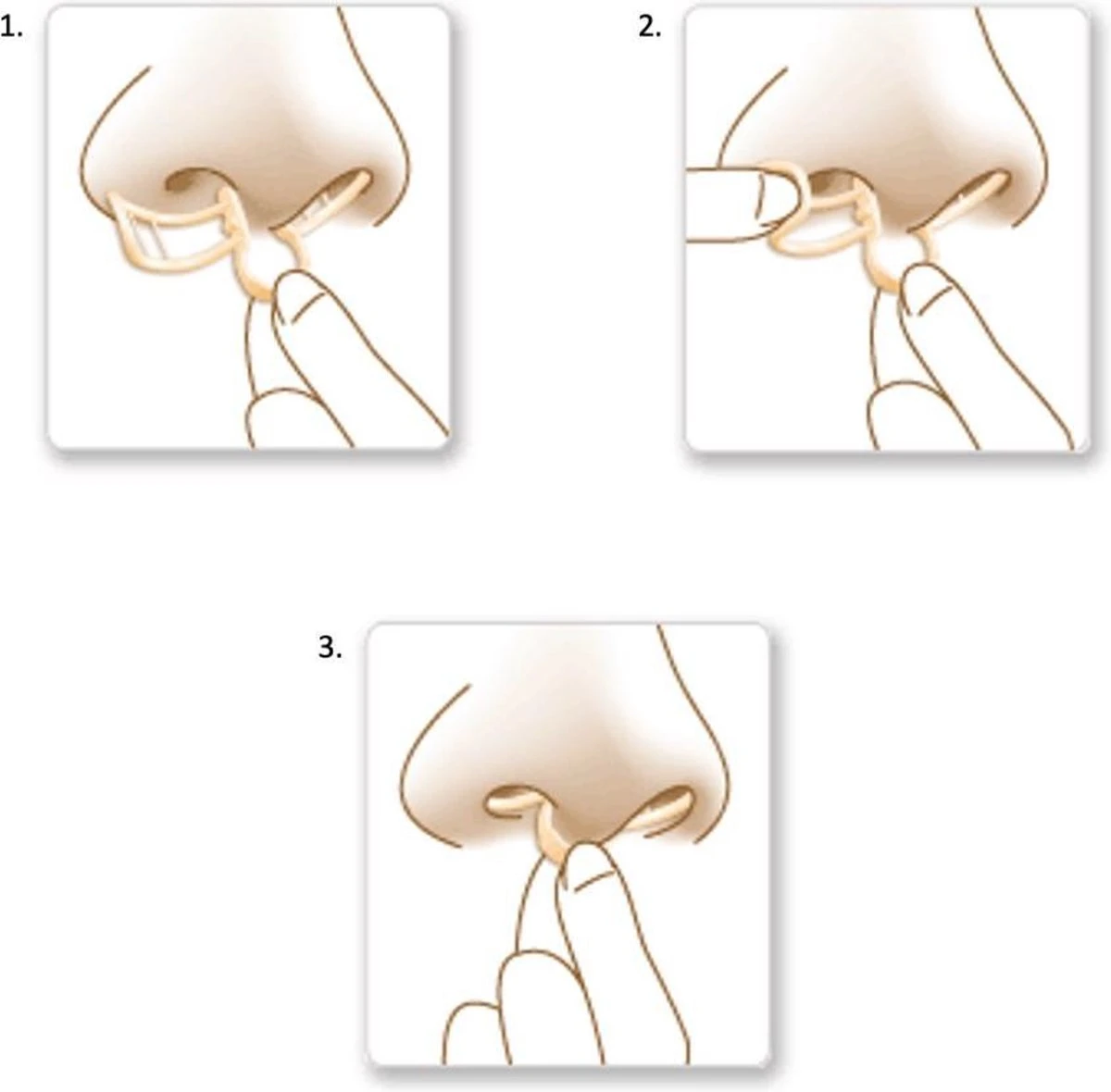 U stopt de Breathe Aid in uw neus. De neusspreider opent uw luchtingang in uw neus iets en u zult meteen merken dat u meer lucht via uw neus kunt inhaleren.