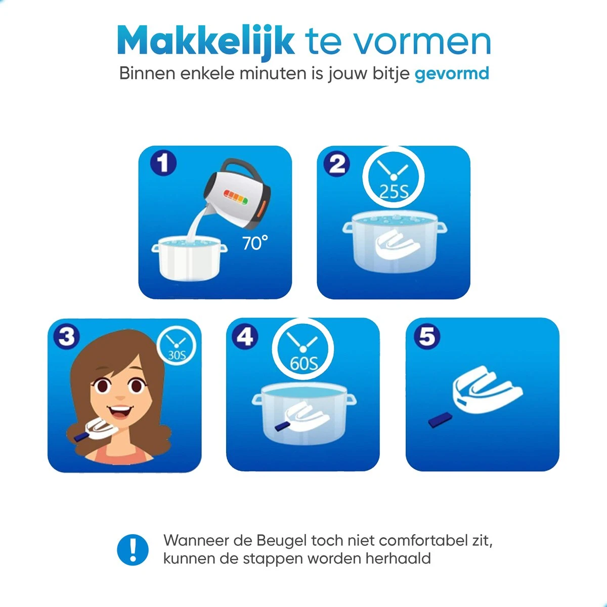 Regelmatig snurken zorgt voor extra vermoeidheid en andere kwaaltjes. Je bent overdag suf, vermoeid of erg prikkelbaar en dat terwijl je gewoon op tijd bent gaan slapen. Onze snurkbeugel is zo ontworpen dat die draagbaar is voor iedereen en perfect vormt naar jouw gebit.