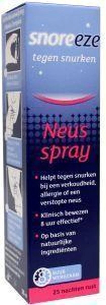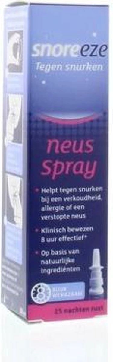 Snoreeze werkt al ruim tien jaar samen met slaapspecialisten en mensen die last hebben van de gevolgen van snurken. Samen hebben zij de producten ontwikkeld die bewezen doeltreffend zijn tegen het snurken. De neusspray zorgt voor 25 nachten rust, en is ideaal wanneer het snurken wordt veroorzaakt door allergieën, verkoudheid of een verstopte neus. De Snoreeze neusspray zorgt ervoor dat de luchtwegen in de neus verder open gaan staan, zodat de luchtdoorstroom verbetert.