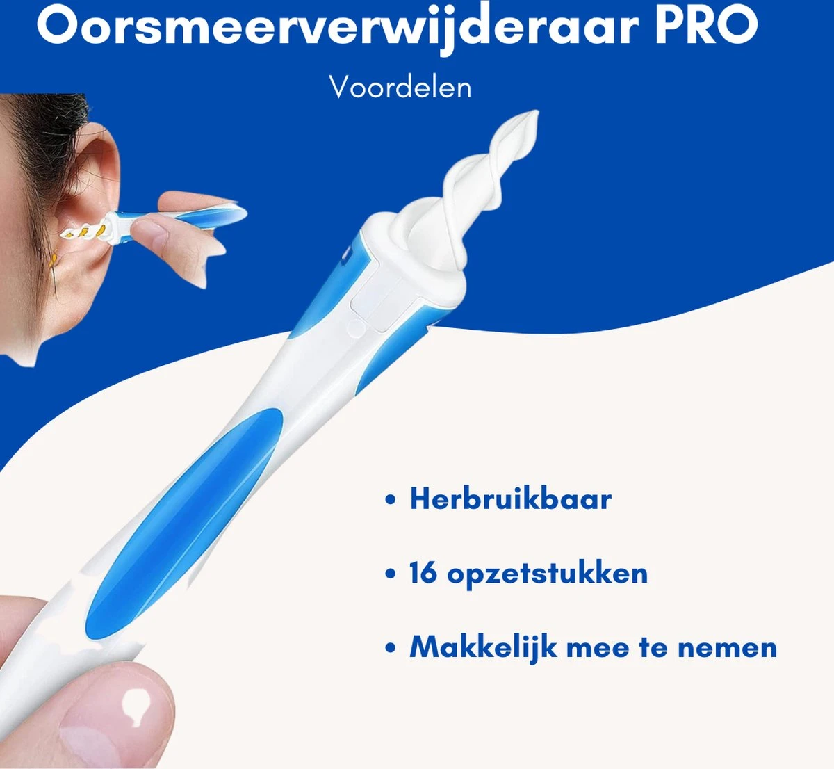 Verwijder jij nog steeds oorsmeer met een wattenstaafje? Wist je dat je hiermee het oorsmeer alleen maar verder naar binnen duwt? Dit kan erg slecht en gevaarlijk voor jou en jouw kinderen zijn. Verwijder jouw oorsmeer zonder gehoorschade aan te brengen. De EarPRO werkt als een spiraal waardoor het eenvoudig, pijnloos en veilig uit jouw oor wordt gehaald.