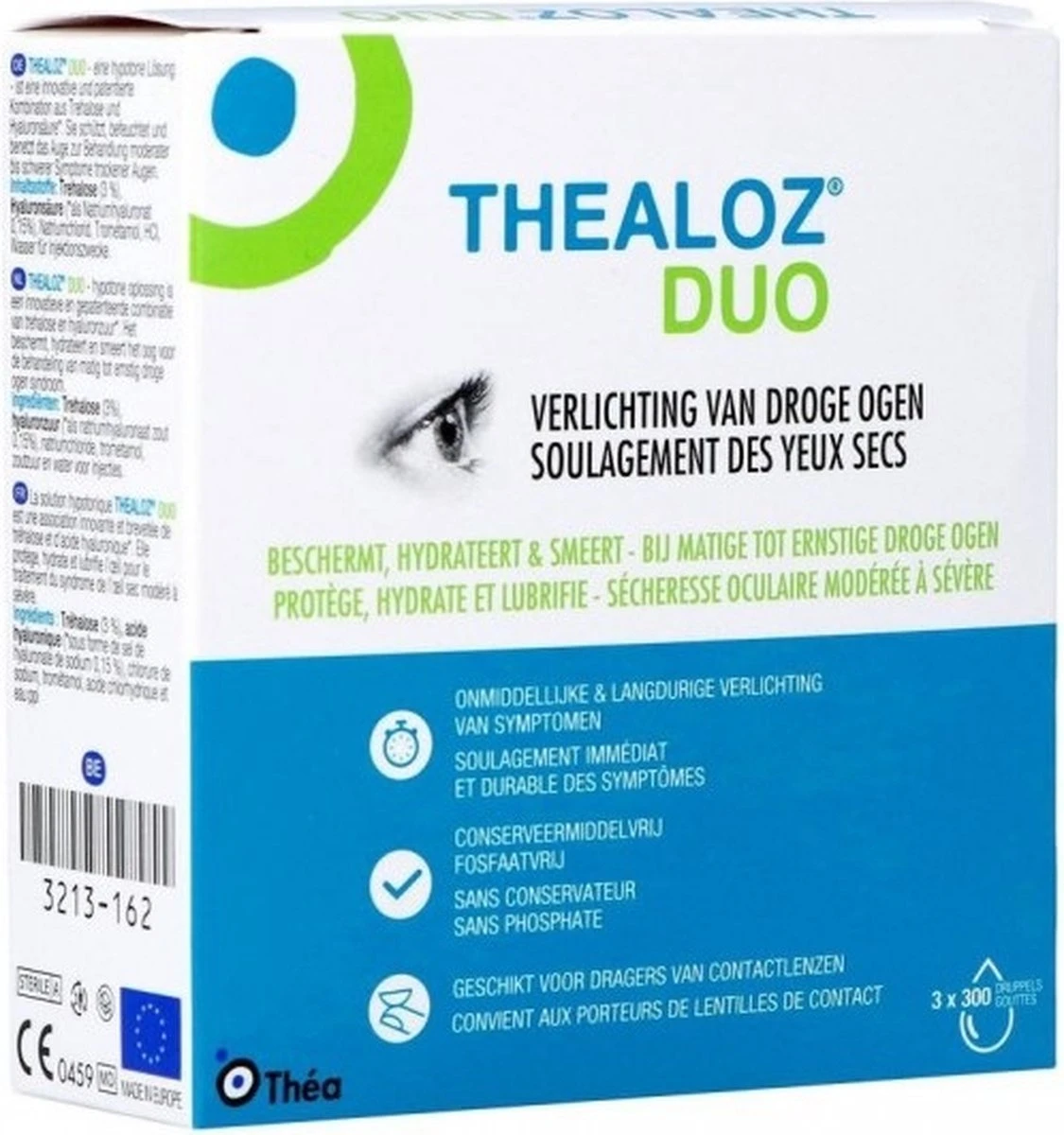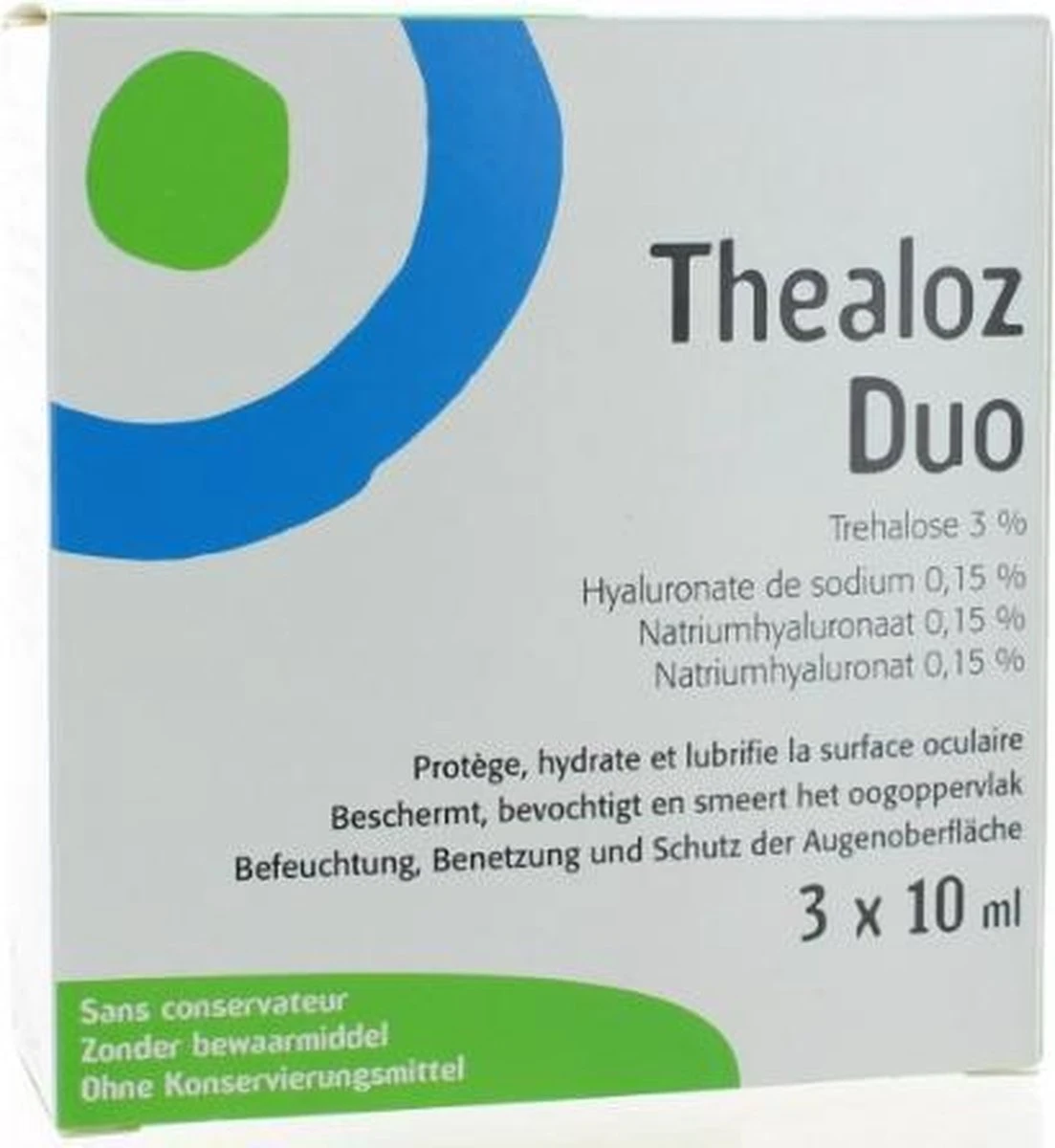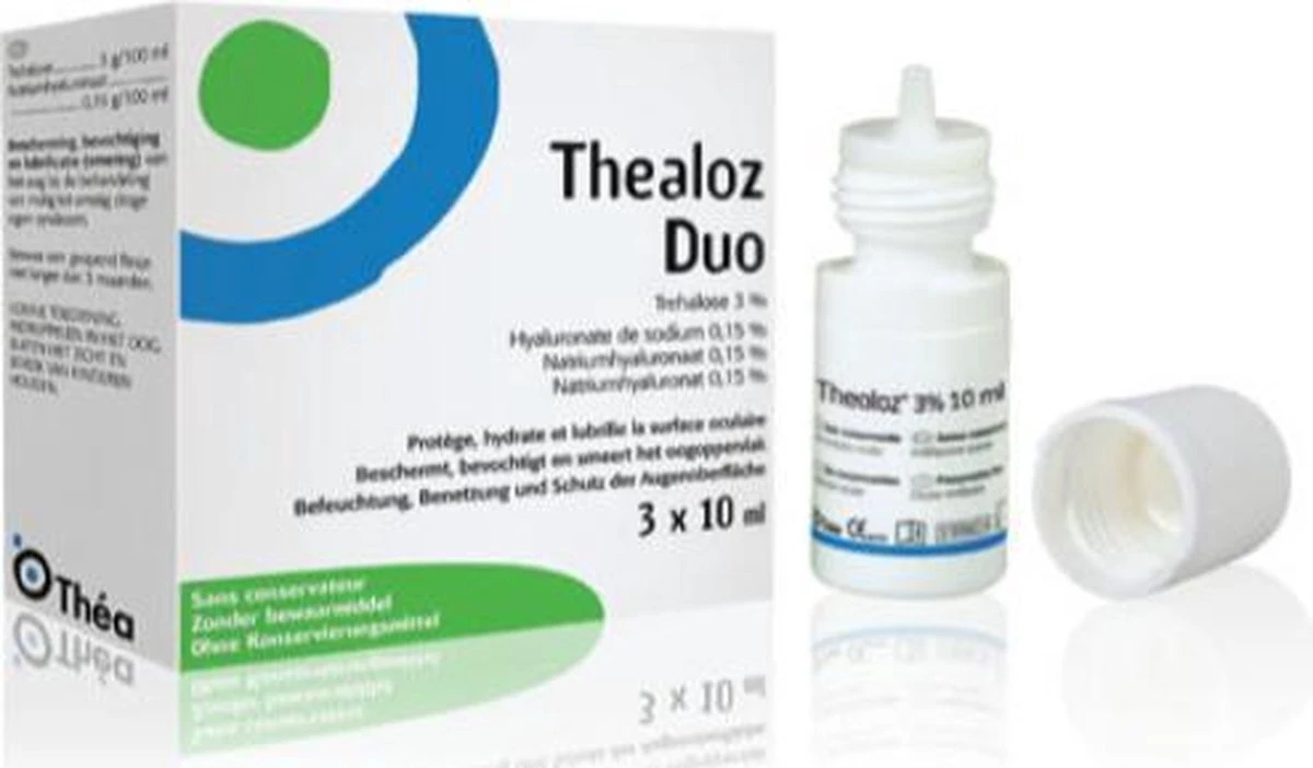 Dankzij de unieke combinatie zorgt Thealoz Duo voor bescherming, hydratatie van het oogoppervlak voor een lange tijd en met een maximum comfort. Thealoz Duo bevat geen conserveringsmiddel en draagt optimaal zorg voor de oogweefsels. De oplossing mag gebruikt worden door contactlensdragers, ongeacht het type contactlens, en biedt onmiddellijk comfort dat de hele dag blijft duren.