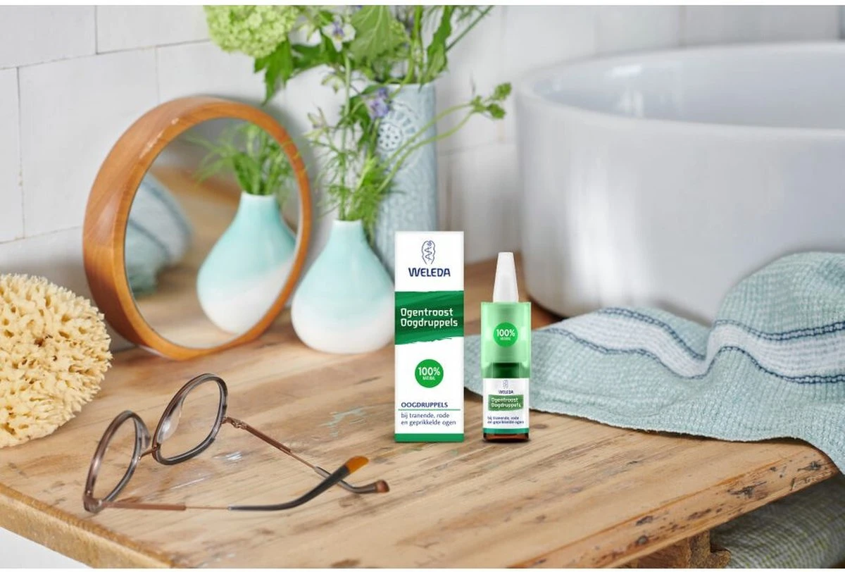 Ogentroost Oogdruppels hebben een verzachtend effect bij tranende, rode en geprikkelde ogen. Ogentroost Oogdruppels bevat Euphrasia (ogentroost) in een isotone oplossing op basis van 100% natuurlijke ingrediënten. Euphrasia heeft een verzachtende en zuiverende invloed op het oog. Gebruik Ogentroost Oogdruppels bij tranende of rode ogen door pollen, vuiltjes, zon, wind of chloor van zwembadwater. De oogdruppels verzachten, verzorgen en verfrissen de ogen direct en kunnen langdurig gebruikt worden. Ogentroost Oogdruppels is er in 3 varianten. Ampullen 10 of 20 stuks (0,4 ml per ampul) en in een flesje (10 ml).