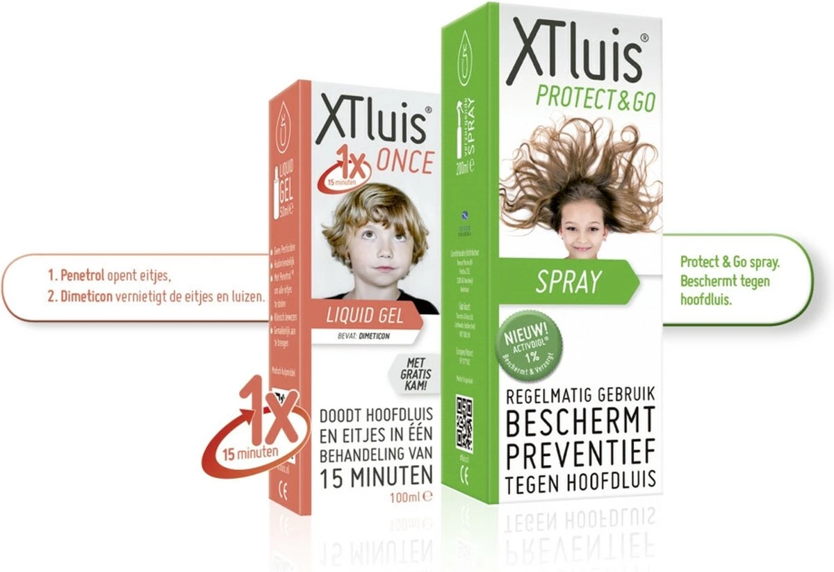 XT Luis Protect & Go Spray is een verzorgende spray die luizen doodt vóórdat er een besmetting plaats kan vinden! Indien er hoofdluis is gesignaleerd en u deze huidvriendelijke spray op waterbasis dan regelmatig toepast, kan bijvoorbeeld uw kind gewoon naar school toe blijven gaan en blijven spelen. Dit is mogelijk dankzij de actieve stof van deze spray (activdiol), die de buitenste huidlaag van de luis aantast, waardoor de luis direct uitdroogt en sterft.